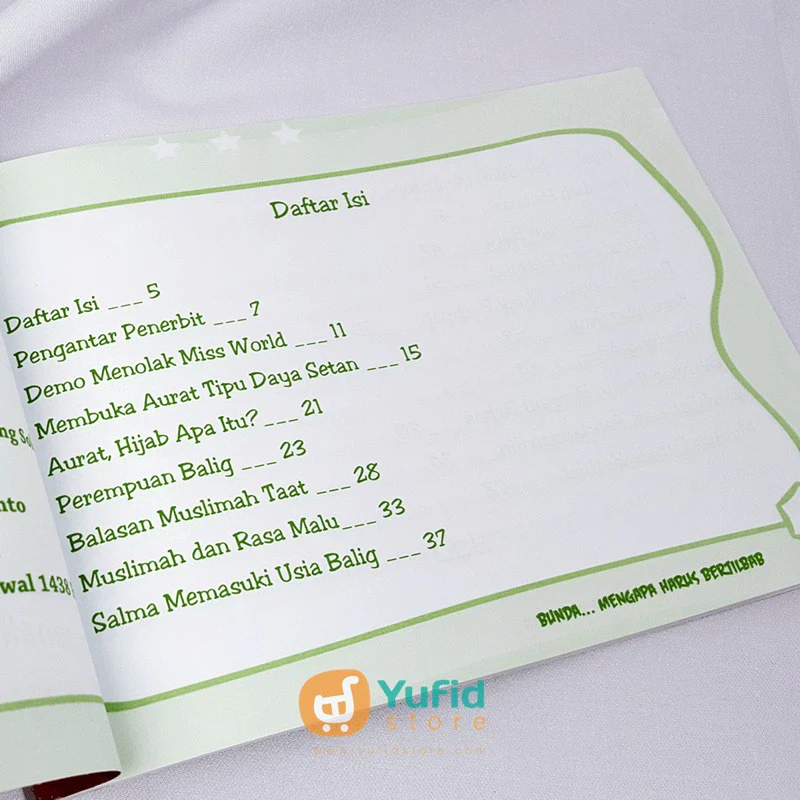 Alhamdulillah, telah hadir buku mungil tentang cara mendidik buah hati kita agar mau mengenakan pakaian syar’i sebagai bentuk ketaatan kepada Allah Ta’ala. Apalagi di masa sekarang ini. Masa di mana setiap jengkal langkah dan pandangan mata adalah godaan keindahan dunia. Sebagaimana yang telah kita ketahui bahwa berjilbab bagi seorang muslimah hukumnya adalah wajib. Maka alangkah baiknya apabila orang tua mengetahui cara parenting islami untuk mengajarkan anak berjilbab sejak dini sehingga mereka dapat menerapkannya. Hal ini bertujuan untuk menumbuhkan rasa cinta sang anak terhadap jilbabnya. Tak hanya itu, sang anak juga dapat mengetahui sedari dini bahwa jilbab ialah salah satu identitas dari seorang muslimah yang harus selalu mereka jaga. Tak hanya sekedar mengajarkan hal itu, orang tua juga harus memiliki kemampuan untuk melatih anak-anaknya berjilbab dalam kesehariannya. Dengan demikian, mereka akan terbiasa memakai jilbab sejak kecil dan kelak ketika mereka sudah dewasa, mereka tidak akan asing lagi dengan jilbab.