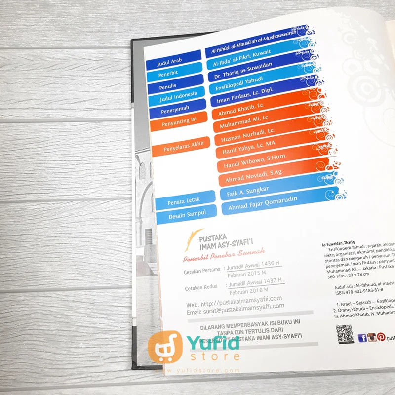 Buku Ensiklopedi Yahudi, Penulis Dr. Thariq as-Suwaidan, Penerbit Pustaka Imam Asy-Syafii, Isi 560 halaman, Full Colour/Warna, Hardcover, Dimensi 24 x 28,5 cm, Berat 2200 gram, Harga Rp. 300.000,-