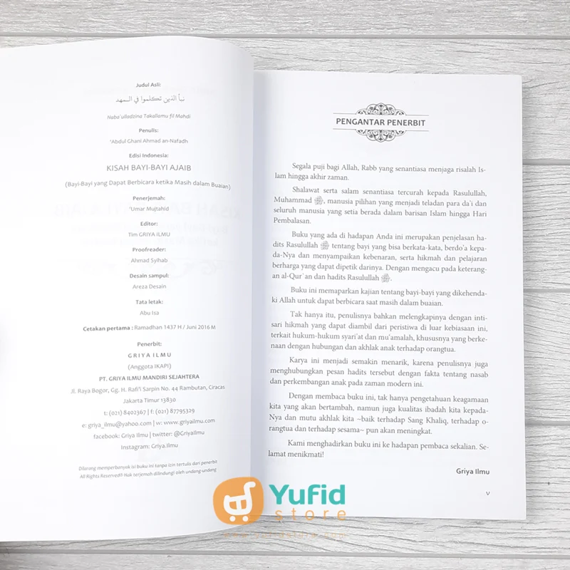 Buku ini memaparkan kajian tentang bayi-bayi yang dikehendaki Allah untuk dapat berbicara saat masih dalam buaian, yang bersumber dari al-Qur’an dan Hadits. Tak hanya itu, penulis bahkan melengkapinya dengan intisari hikmah yang dapat diambil dari peristiwa ajaib ini, terkait hukum-hukum syari’at dan mu’amalah, khususnya yang berkenaan dengan hubungan dan akhlak anak terhadap orangtua.