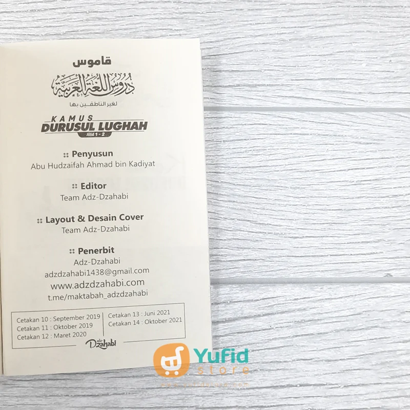 Kini telah hadir Kamus Durusul Lughah sebagai pegangan para pembelajar kitab Durusul Lughah. Memiliki kamus ini memudahkan kita mengikuti pelajaran Durusul lughah karena di dalam kitab tersebut full berisi materi dan percakapan dengan bahasa arab tanpa terjemahannya, sehingga dibutuhkan kamus sebagai kitab pendamping.