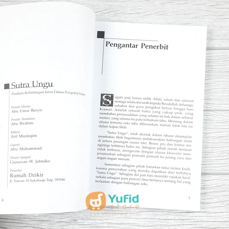 Buku Sutra Ungu hadir sebagai panduan lengkap hubungan intim dalam perspektif Islam, membahas tuntas mulai dari urgensi seks dalam pernikahan, pemanasan, variasi posisi, hingga isu seperti frigiditas, ejakulasi dini, dan makanan peningkat gairah. Ditulis dengan bahasa santun dan berdasarkan naskah para ulama, buku ini membantu suami istri memahami hak dan kewajiban masing-masing dengan ilmu. Saatnya membangun keharmonisan rumah tangga yang diberkahi. Miliki bukunya sekarang dan rasakan manfaatnya!
