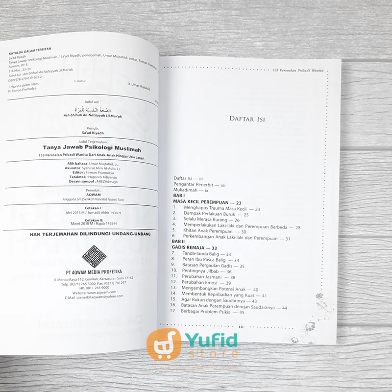 Melalui Buku Tanya Jawab Psikologi Muslimah, Dr. Sa’ad Riyadh memberikan jawaban terstruktur untuk 133 pertanyaan seputar kehidupan wanita dari masa anak-anak hingga usia lanjut. Berdasarkan pandangan psikologi dan syariat Islam, buku ini membantu wanita memahami dirinya lebih baik sekaligus menemukan solusi atas berbagai masalah kehidupan. Jangan biarkan pertanyaan-pertanyaan itu terus mengganjal, dapatkan buku ini sekarang dan temukan jawabannya!